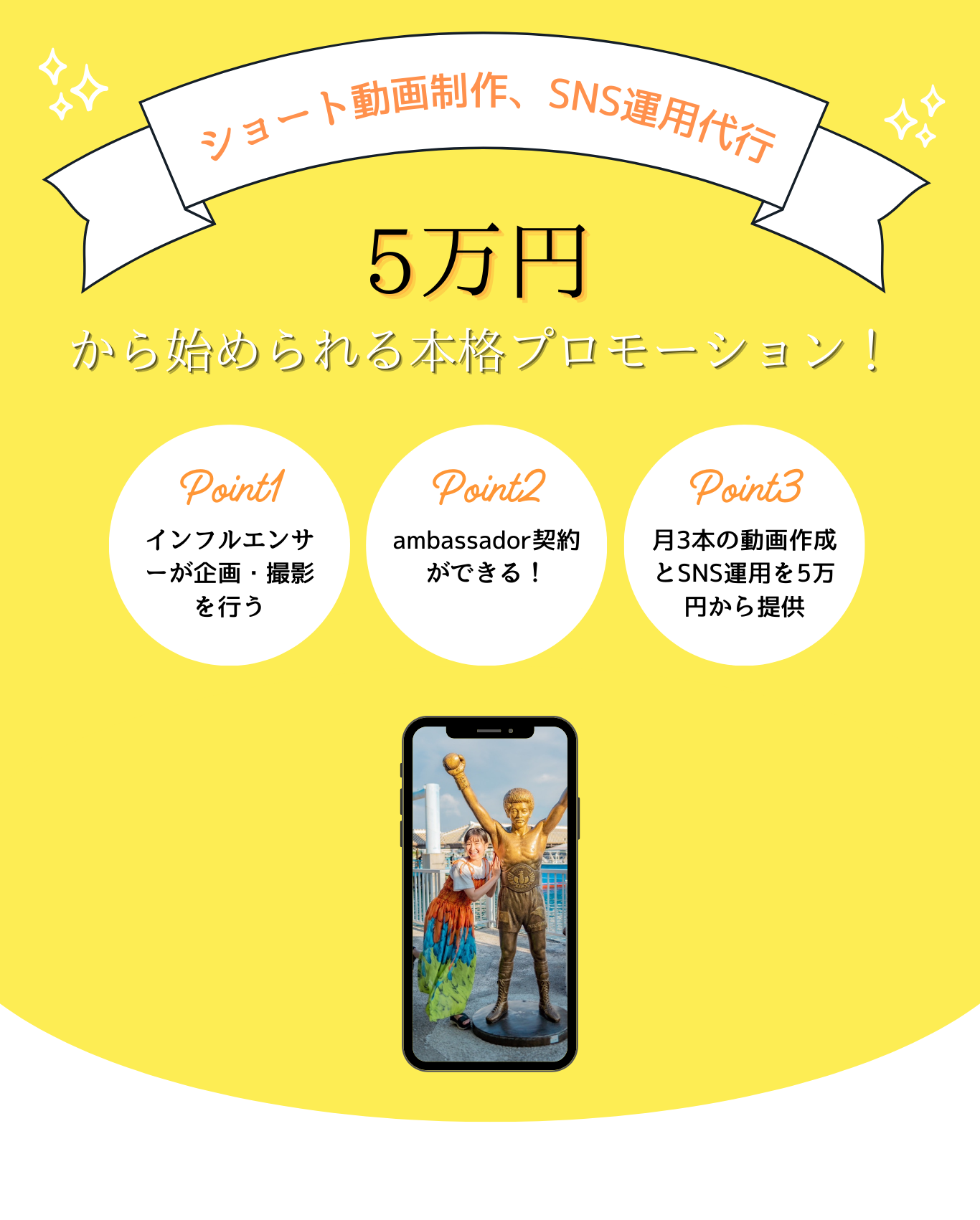 インフルエンサーが直接訪問し、企画立案から撮影までを一貫して行います。これにより、貴社の魅力を最大限に引き出すプロモーション動画を制作します。
